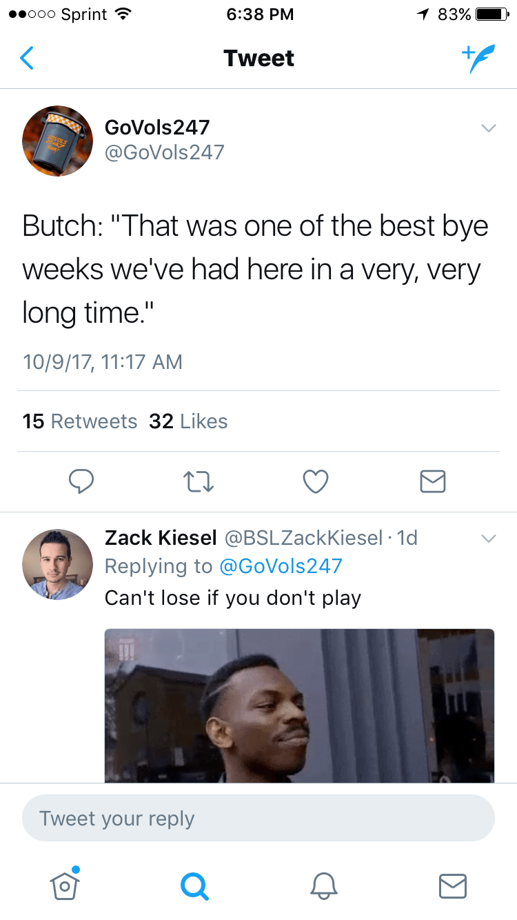 You have to love his ability to put a positive spin on things. Butch Jones once crowned his team “Champions of Life” and now he is saying they had their best bye week in a long, long time. These things have become laughable, especially when details of a fight between teammates come out.