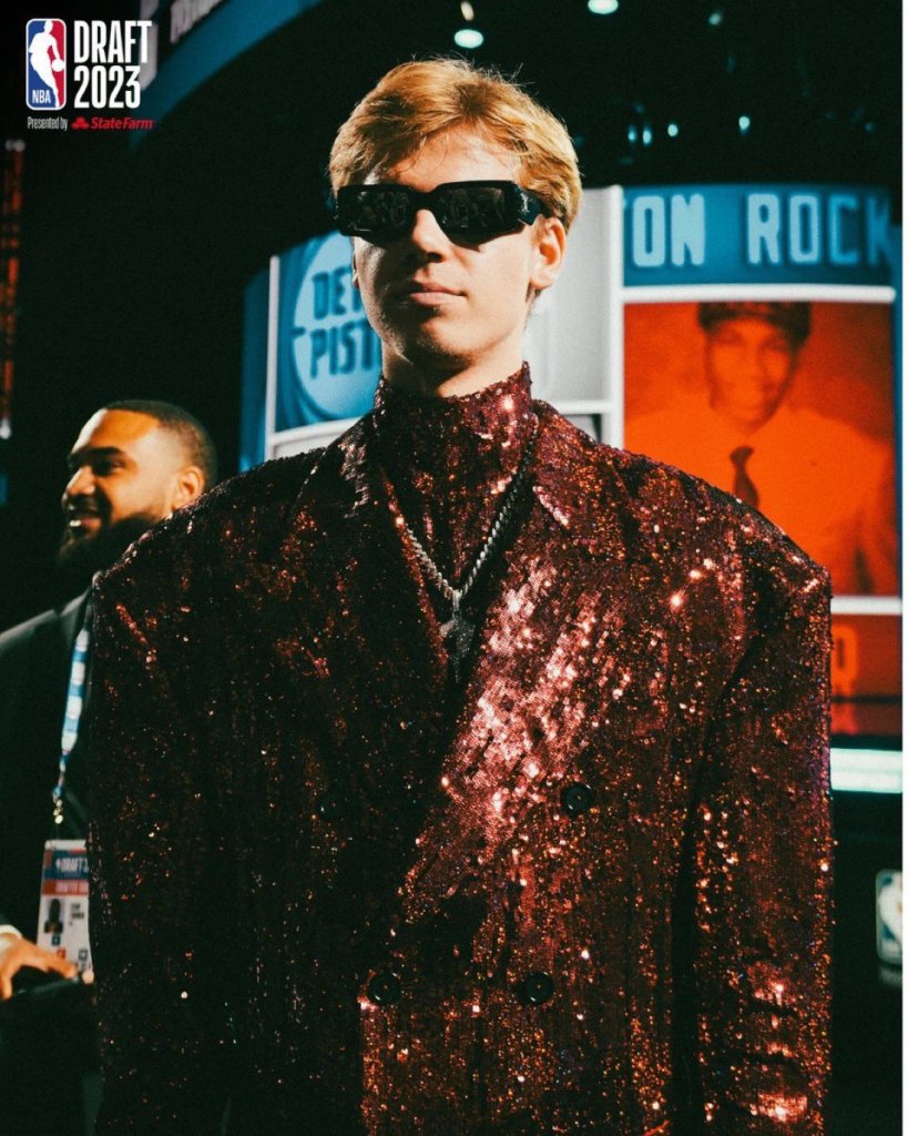The NBA Draft has seen all kinds of crazy suits and wardrobe throughout its history, however, nothing as striking as the all-sequined look Gradey Dick sported on draft night.