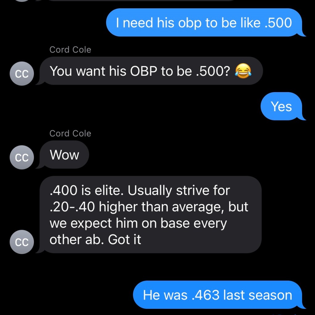 As for the .500 on-base percentage? Some may have said that was too lofty.
