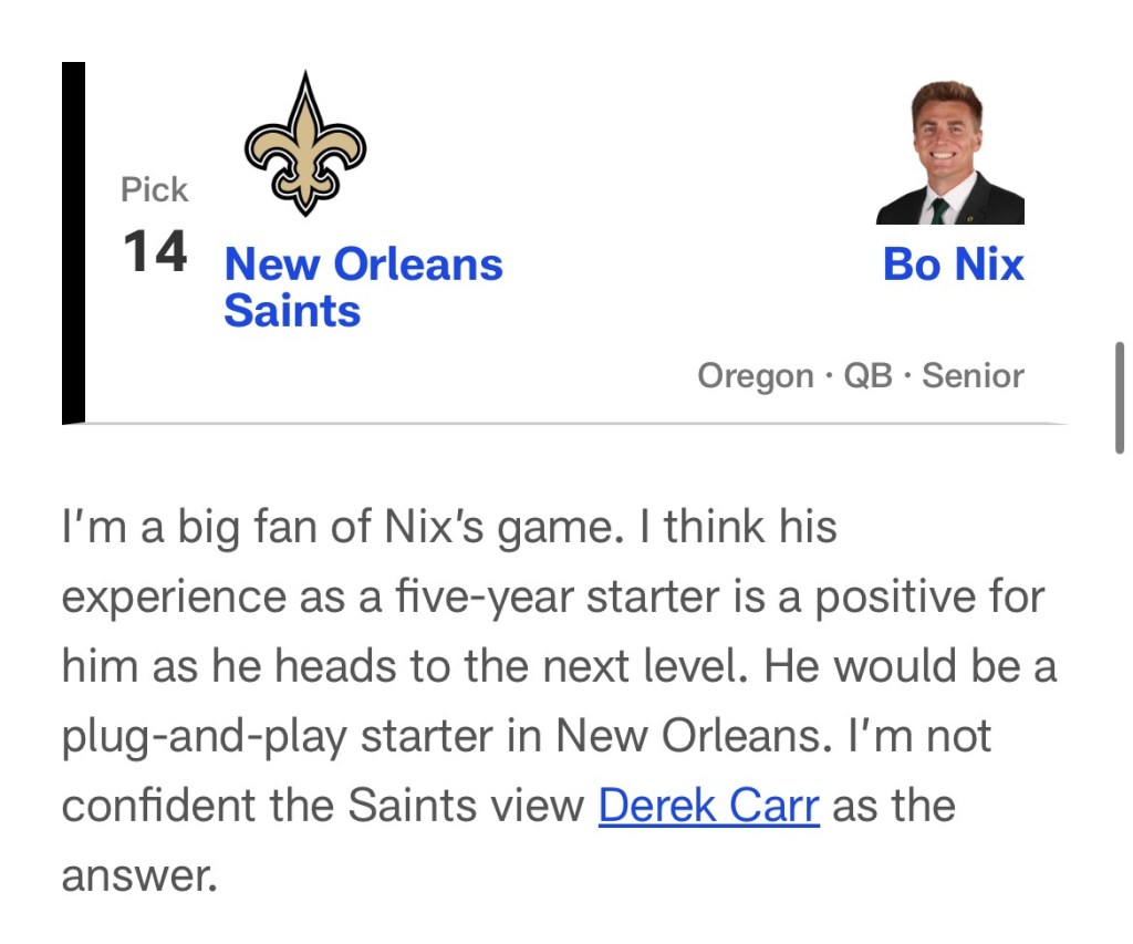 Nonetheless, I do not think drafting Bo Nix would be a wise move for the Saints.