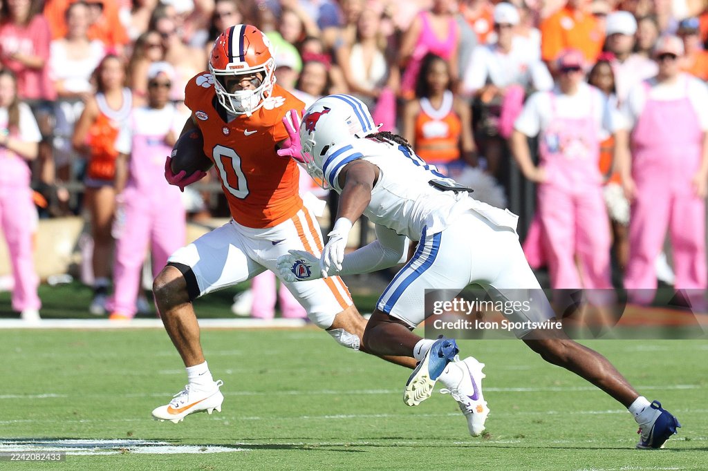 CLEMSON, SC – OCTOBER 18: Clemson Tigers wide receiver Antonio Williams (0) during a college football game between the SMU Mustangs and the Clemson Tigers on October 18, 2025 at Memorial Stadium in Clemson, S.C. (Photo by John Byrum/Icon Sportswire via Getty Images)